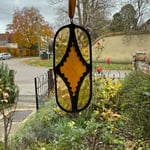 10x4.5cm Made out of coloured glass, lead solder and copper foil, hung on ribbon.