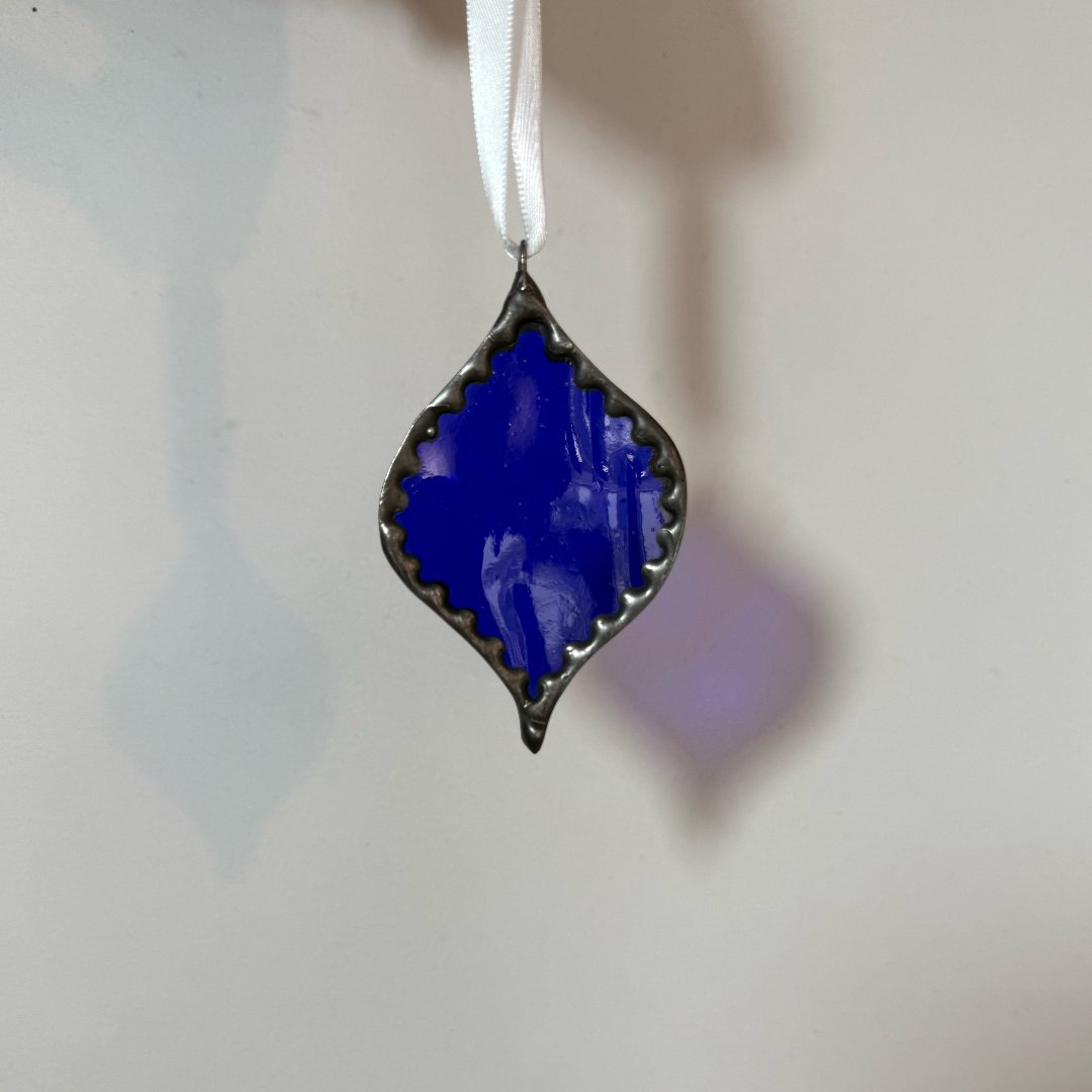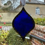 7.5x5cm Made out of coloured glass, lead solder and copper foil, hung on ribbon.